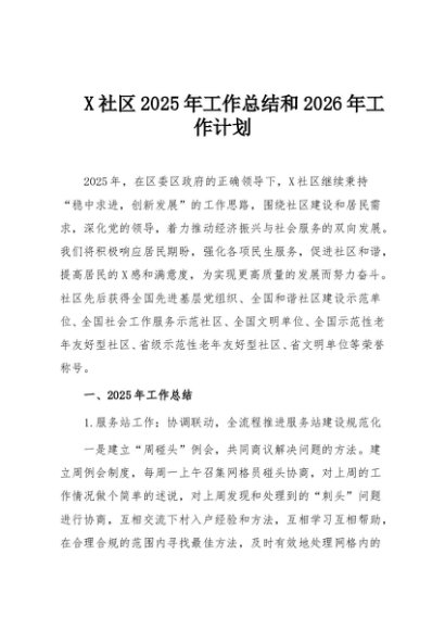 / 【七哥公文】2025年:X社区2025年工作总结和2026年工作计划+更多免费公文+VX:QiGeGongWen2024