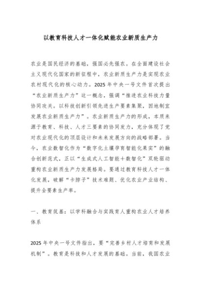 / 【七哥公文】2025年:以教育科技人才一体化赋能农业新质生产力+更多免费公文+VX:QiGeGongWen2024