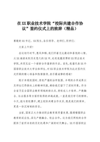 【七哥公文】2025年:在XX职业技术学院“校际共建合作协议”签约仪式上的致辞(精品)+更多免费公文+VX:QiGeGongWen2024