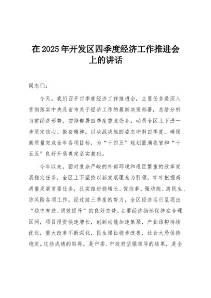 / 【七哥公文】2025年:在2025年开发区四季度经济工作推进会上的讲话+更多免费公文+VX:QiGeGongWen2024
