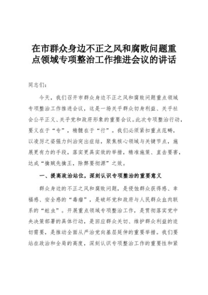 【七哥公文】2025年:在市群众身边不正之风和腐败问题重点领域专项整治工作推进会议的讲话+更多免费公文+VX:QiGeGongWen2024