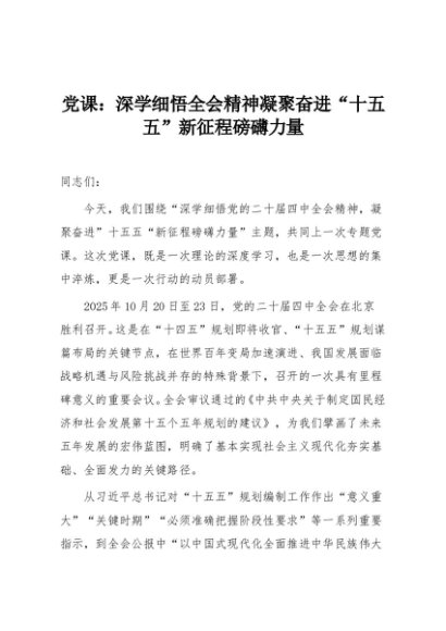 【七哥公文】2025年:党课:深学细悟全会精神凝聚奋进“十五五”新征程磅礴力量+更多免费公文+VX:QiGeGongWen2024
