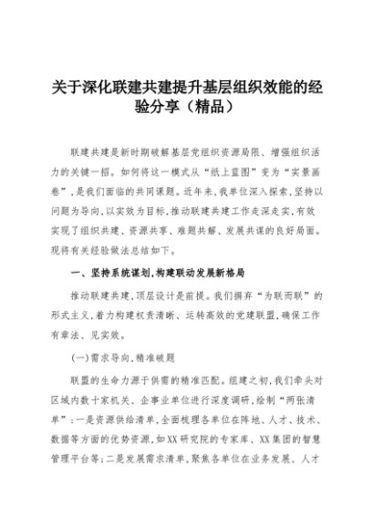 【七哥公文】2025年:关于深化联建共建提升基层组织效能的经验分享(精品)+更多免费公文+VX:QiGeGongWen2024