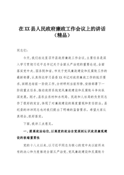 / 【七哥公文】2025年:在XX县人民政府廉政工作会议上的讲话(精品)+更多免费公文+VX:QiGeGongWen2024