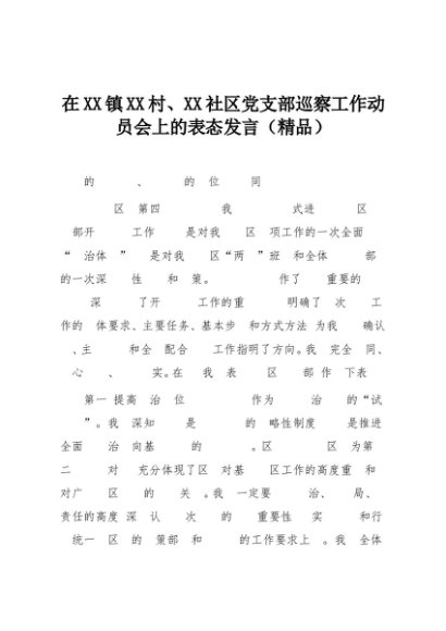 【七哥公文】2025年:在XX镇XX村、XX社区党支部巡察工作动员会上的表态发言(精品)+更多免费公文+VX:QiGeGongWen2024