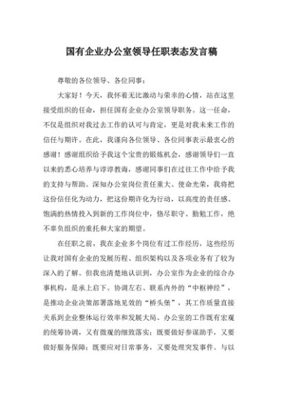 【七哥公文】2025年:国有企业办公室领导任职表态发言稿_副本+更多免费公文+VX:QiGeGongWen2024
