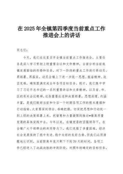 / 【七哥公文】2025年:在2025年全镇第四季度当前重点工作推进会上的讲话+更多免费公文+VX:QiGeGongWen2024
