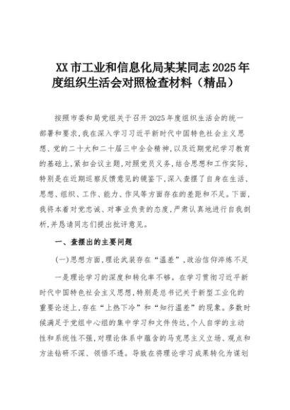 【七哥公文】2025年:XX市工业和信息化局某某同志2025年度组织生活会对照检查材料(精品)+更多免费公文+VX:QiGeGongWen2024