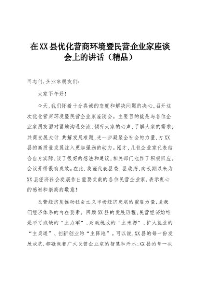 【七哥公文】2025年:在XX县优化营商环境暨民营企业家座谈会上的讲话(精品)+更多免费公文+VX:QiGeGongWen2024