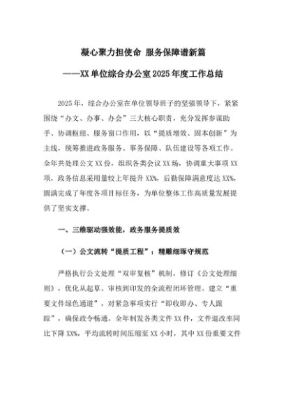 【七哥公文】2025年:XX单位综合办公室2025年度工作总结:凝心聚力担使命 服务保障谱新篇_副本+更多免费公文+VX:QiGeGongWen2024