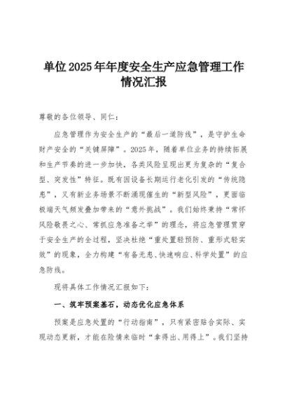 / 【七哥公文】2025年:单位2025年年度安全生产应急管理工作情况汇报+更多免费公文+VX:QiGeGongWen2024