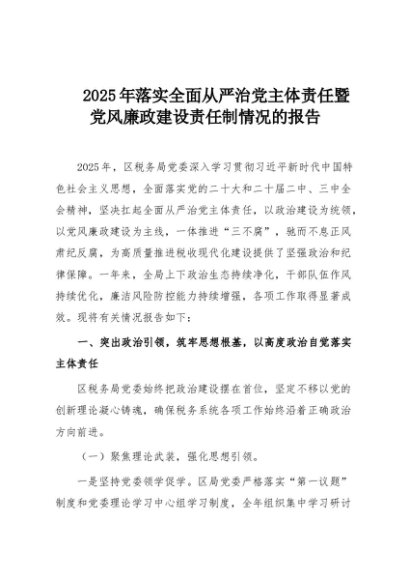 【七哥公文】2025年:2025年落实全面从严治党主体责任暨党风廉政建设责任制情况的报告+更多免费公文+VX:QiGeGongWen2024