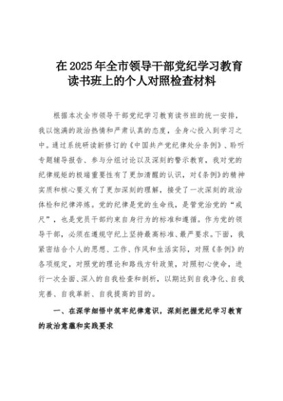 【七哥公文】2025年:在2025年全市领导干部党纪学习教育读书班上的个人对照检查材料+更多免费公文+VX:QiGeGongWen2024