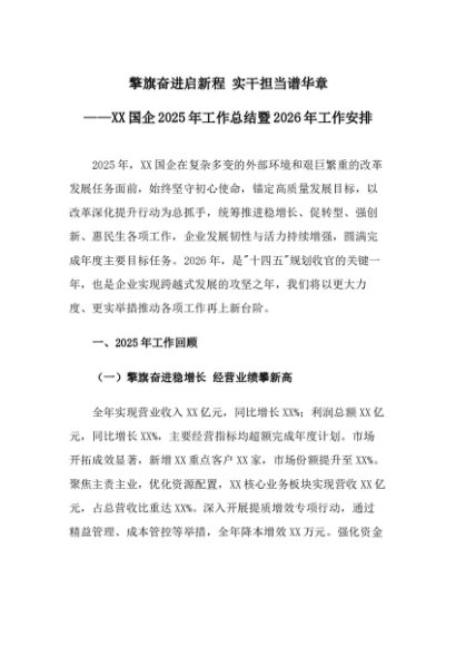 【七哥公文】2025年:XX国企2025年工作总结暨2026年工作安排:擎旗奋进启新程 实干担当谱华章_副本+更多免费公文+VX:QiGeGongWen2024