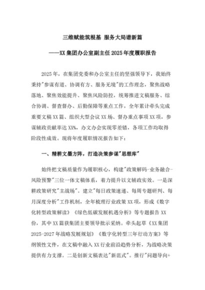 【七哥公文】2025年:XX集团办公室副主任2025年度履职报告:三维赋能筑根基 服务大局谱新篇_副本+更多免费公文+VX:QiGeGongWen2024