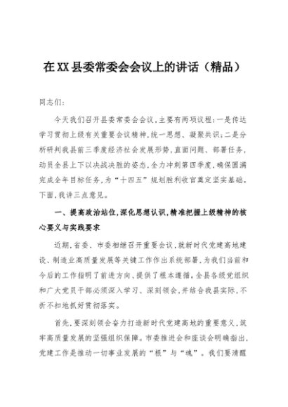 / 【七哥公文】2025年:在XX县委常委会会议上的讲话(精品)+更多免费公文+VX:QiGeGongWen2024