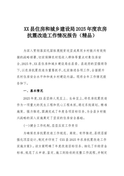 【七哥公文】2025年:XX县住房和城乡建设局2025年度农房抗震改造工作情况报告(精品)+更多免费公文+VX:QiGeGongWen2024