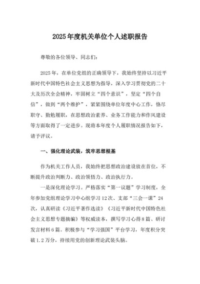 / 【七哥公文】2025年:2025年度机关单位个人述职报告+更多免费公文+VX:QiGeGongWen2024