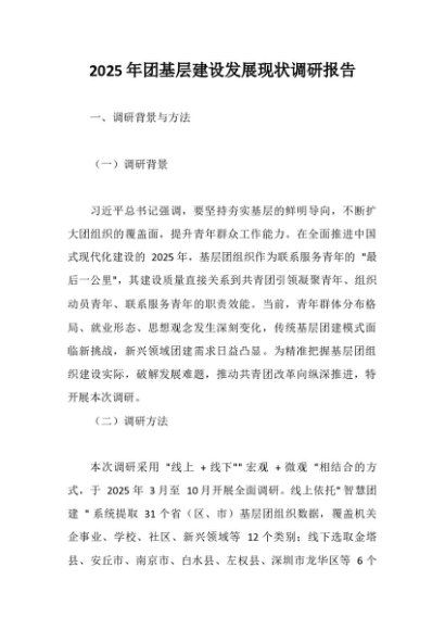 / 【七哥公文】2025年:2025年团基层建设发展现状调研报告+更多免费公文+VX:QiGeGongWen2024