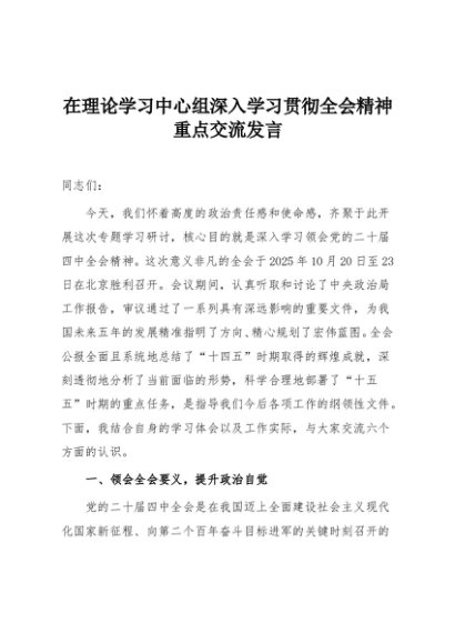 / 【七哥公文】2025年:在理论学习中心组深入学习贯彻全会精神重点交流发言+更多免费公文+VX:QiGeGongWen2024