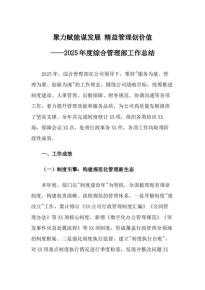 【七哥公文】2025年:2025年度综合管理部工作总结:聚力赋能谋发展 精益管理创价值_副本+更多免费公文+VX:QiGeGongWen2024