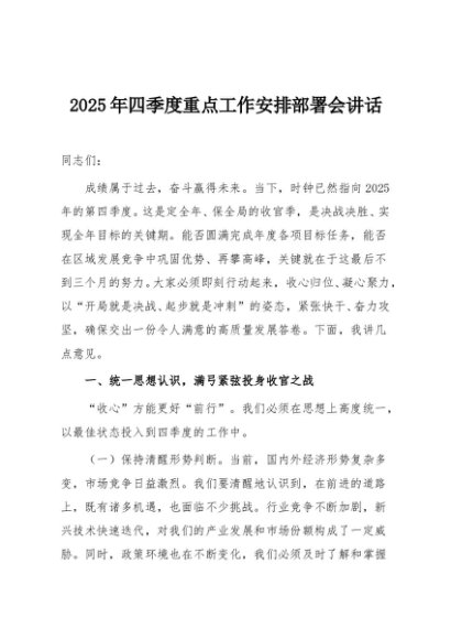 / 【七哥公文】2025年:2025年四季度重点工作安排部署会讲话+更多免费公文+VX:QiGeGongWen2024