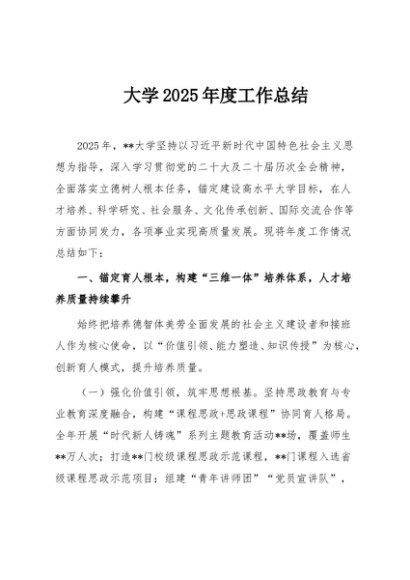 / 【七哥公文】2025年:大学2025年度工作总结+更多免费公文+VX:QiGeGongWen2024
