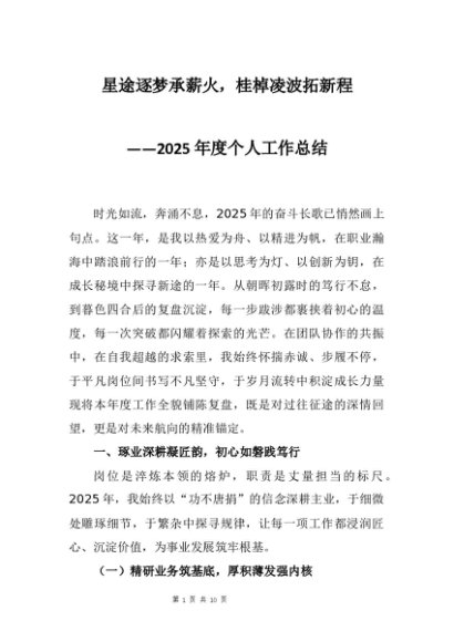 【七哥公文】2025年:2025年度个人工作总结:星途逐梦承薪火,桂棹凌波拓新程+更多免费公文+VX:QiGeGongWen2024