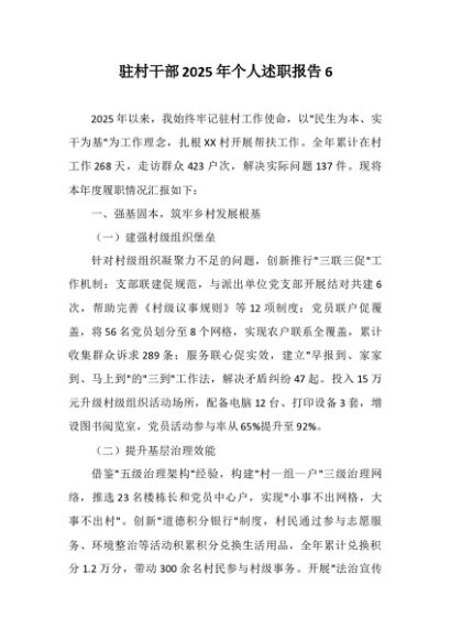 / 【七哥公文】2025年:驻村干部2025年个人述职报告6+更多免费公文+VX:QiGeGongWen2024