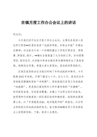 / 【七哥公文】2025年:在镇月度工作办公会议上的讲话+更多免费公文+VX:QiGeGongWen2024