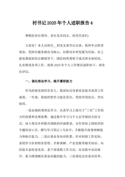 / 【七哥公文】2025年:村书记2025年个人述职报告4+更多免费公文+VX:QiGeGongWen2024