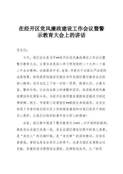 【七哥公文】2025年:在经开区党风廉政建设工作会议暨警示教育大会上的讲话+更多免费公文+VX:QiGeGongWen2024