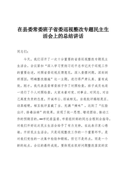 【七哥公文】2025年:在县委常委班子省委巡视整改专题民主生活会上的总结讲话+更多免费公文+VX:QiGeGongWen2024