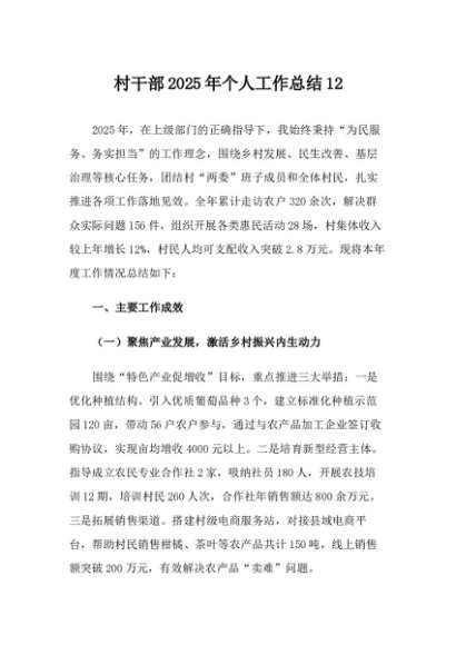 【七哥公文】2025年:村干部2025年个人工作总结12+更多免费公文+VX:QiGeGongWen2024