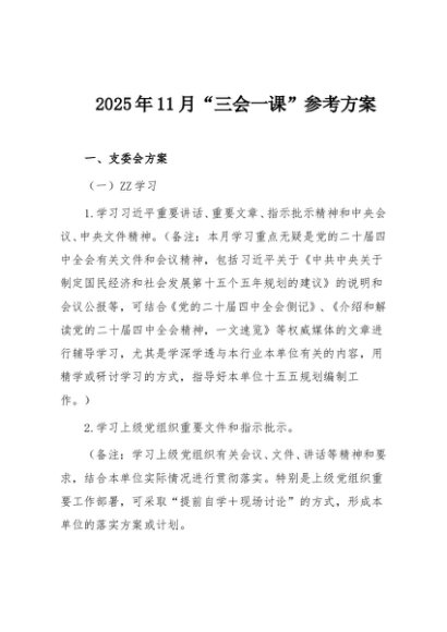 / 【七哥公文】2025年:2025年11月“三会一课”参考方案+更多免费公文+VX:QiGeGongWen2024