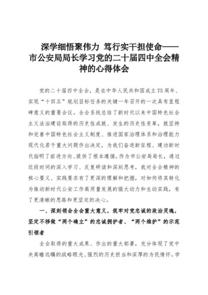 【七哥公文】2025年:深学细悟聚伟力 笃行实干担使命——市公安局局长学习党的二十届四中全会精神的心得体会+更多免费公文+VX:QiGeGongWen2024