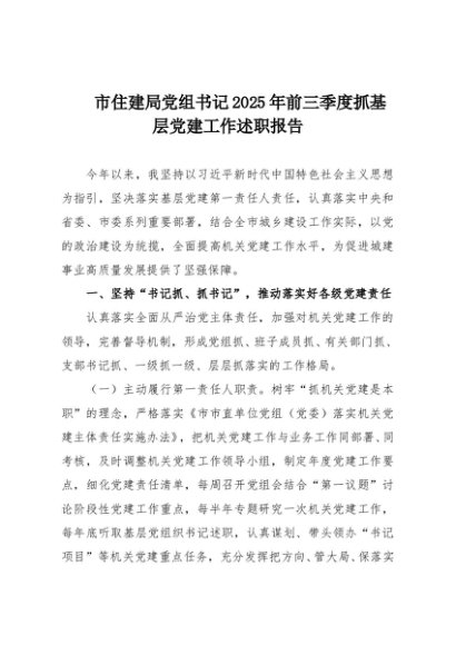 【七哥公文】2025年:市住建局党组书记2025年前三季度抓基层党建工作述职报告+更多免费公文+VX:QiGeGongWen2024
