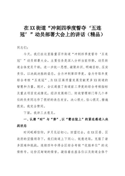 【七哥公文】2025年:在XX街道“冲刺四季度誓夺‘五连冠’”动员部署大会上的讲话(精品)+更多免费公文+VX:QiGeGongWen2024