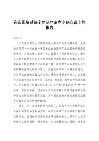 / 【七哥公文】2025年:在市国资系统全面从严治党专题会议上的报告+更多免费公文+VX:QiGeGongWen2024