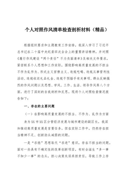 / 【七哥公文】2025年:个人对照作风清单检查剖析材料(精品)+更多免费公文+VX:QiGeGongWen2024