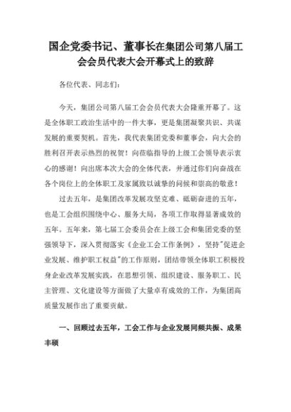 【七哥公文】2025年:国企党委书记、董事长在集团公司第八届工会会员代表大会开幕式上的致辞+更多免费公文+VX:QiGeGongWen2024