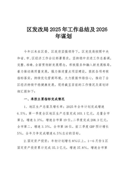 / 【七哥公文】2025年:区发改局2025年工作总结及2026年谋划+更多免费公文+VX:QiGeGongWen2024