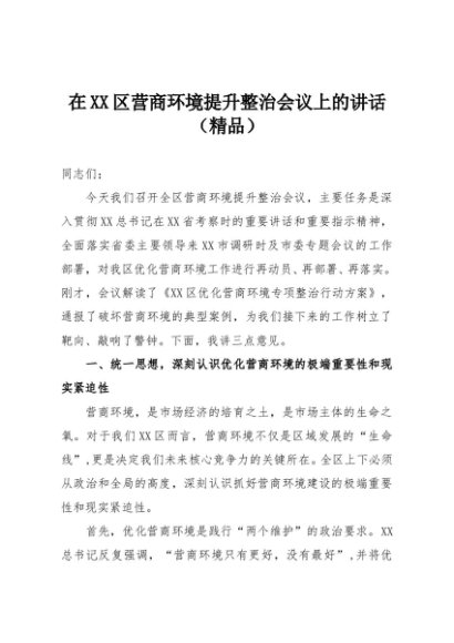 / 【七哥公文】2025年:在XX区营商环境提升整治会议上的讲话(精品)+更多免费公文+VX:QiGeGongWen2024