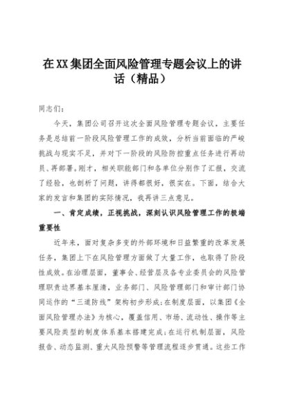 / 【七哥公文】2025年:在XX集团全面风险管理专题会议上的讲话(精品)+更多免费公文+VX:QiGeGongWen2024