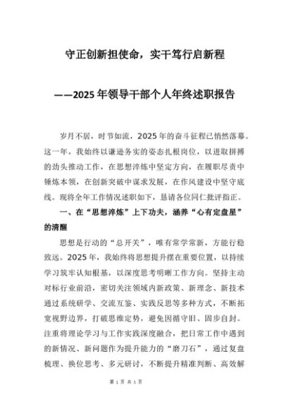 【七哥公文】2025年:2025年领导干部个人年终述职报告:守正创新担使命,实干笃行启新程+更多免费公文+VX:QiGeGongWen2024