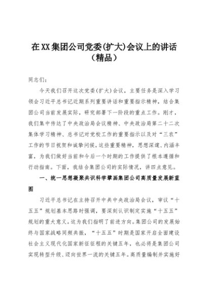 / 【七哥公文】2025年:在XX集团公司党委(扩大)会议上的讲话(精品)+更多免费公文+VX:QiGeGongWen2024