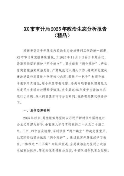 / 【七哥公文】2025年:XX市审计局2025年政治生态分析报告(精品)+更多免费公文+VX:QiGeGongWen2024