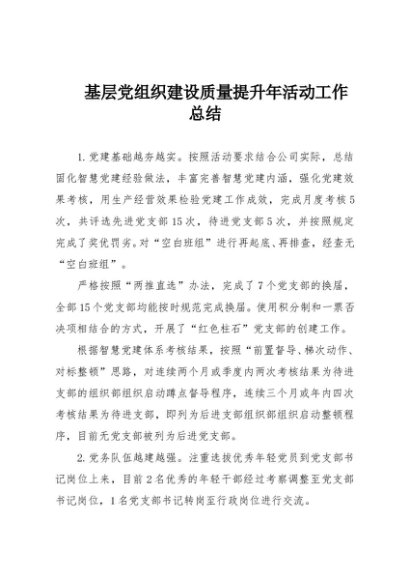 【七哥公文】2025年:基层党组织建设质量提升年活动工作总结+更多免费公文+VX:QiGeGongWen2024