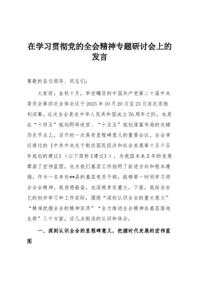 / 【七哥公文】2025年:在学习贯彻党的全会精神专题研讨会上的发言+更多免费公文+VX:QiGeGongWen2024