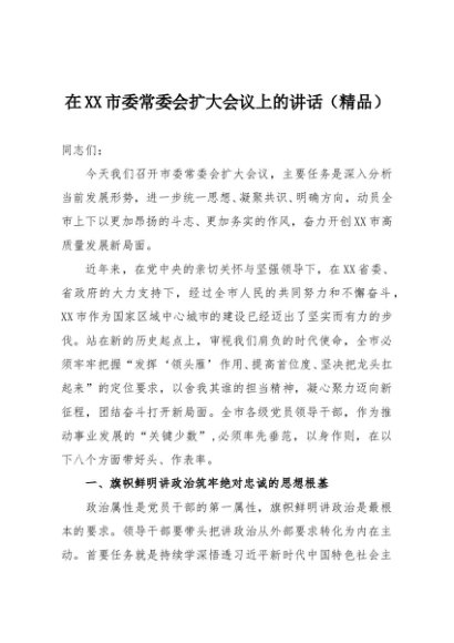 / 【七哥公文】2025年:在XX市委常委会扩大会议上的讲话(精品)+更多免费公文+VX:QiGeGongWen2024